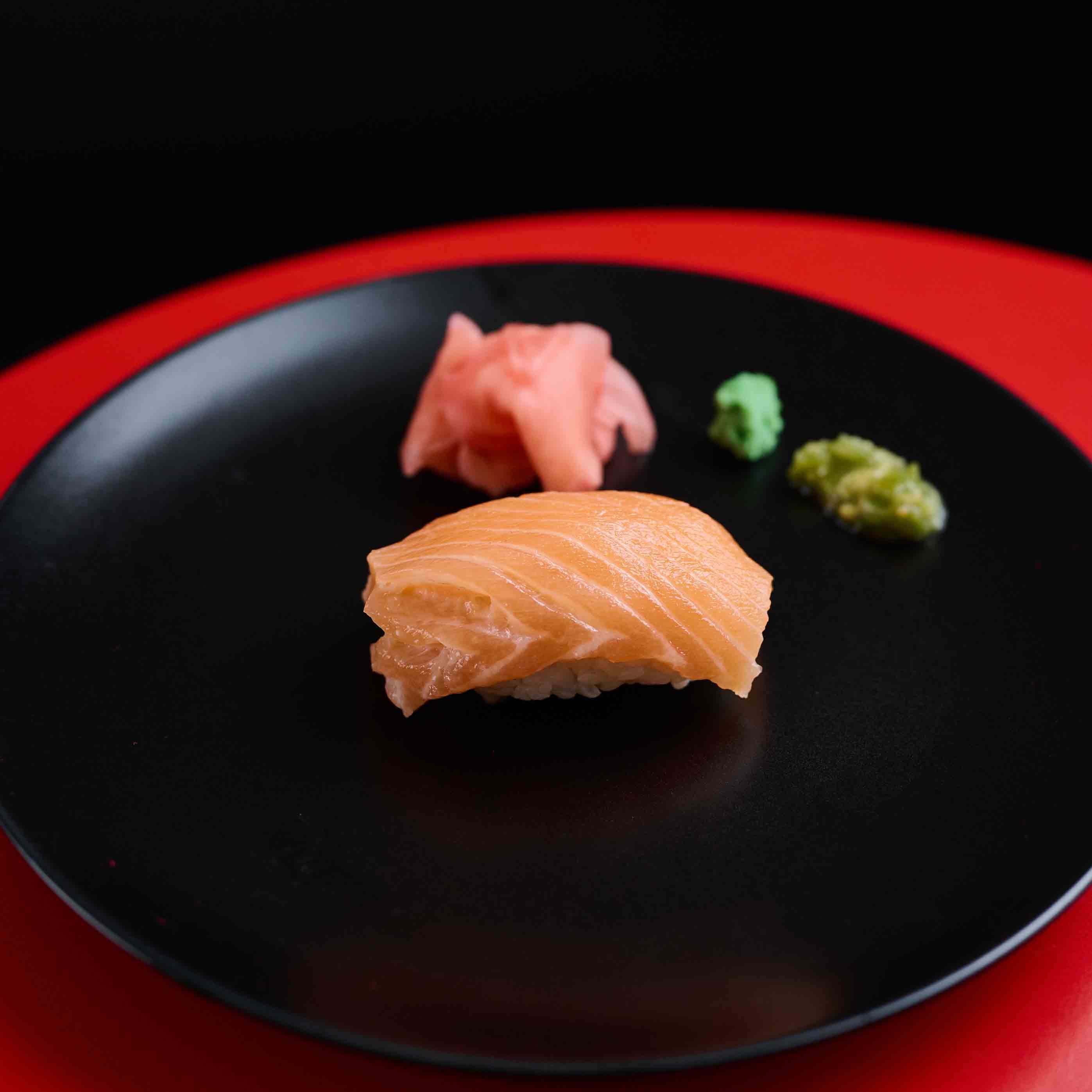 losos, krémový ryr, rukola, tempura, japonská majonéza, sladká chilli omáčka