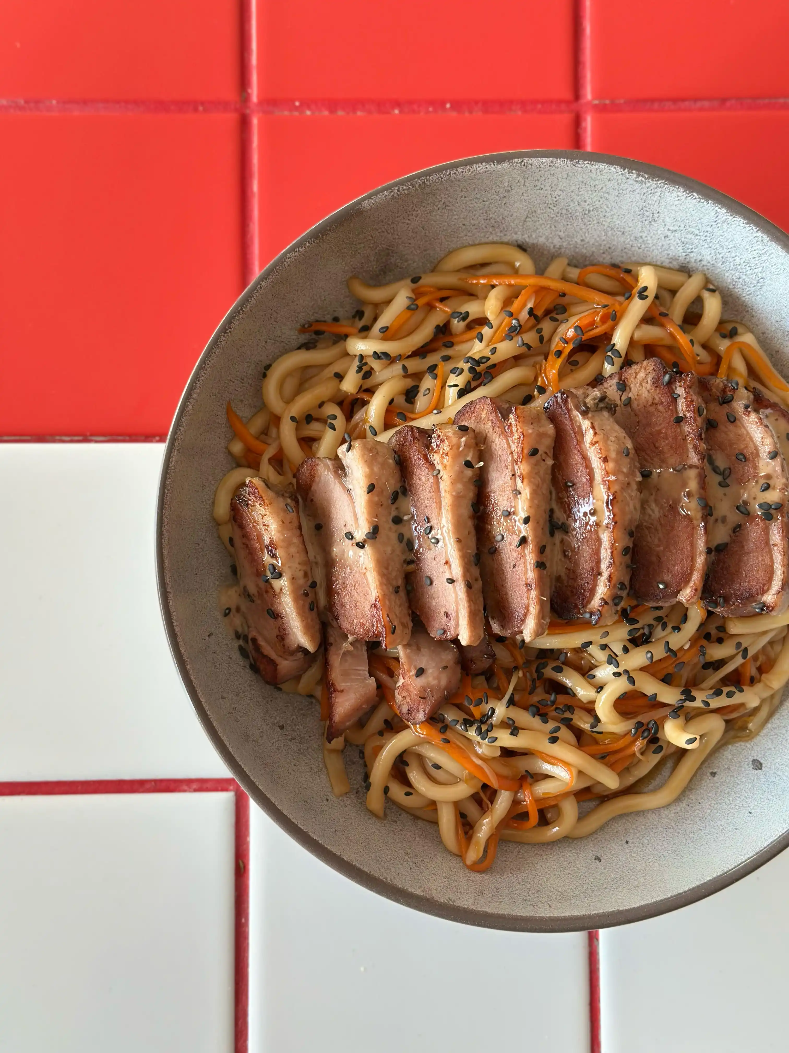 rezamce vo woku s mrkvou a kačacie prsia preliate sezamovým dipom